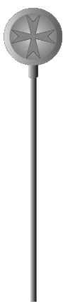 Dodnes sa zachovalo len jedno zobrazenie tohoto objektu - (náhrobný kameň) Gérard de Villers veliteľ podprovincie v Belgicku. V texte je popísaná dlhá drevená palica s kovovou okrúhlou hlavicou, s vyrytým osemhrotým krížom, uzavretým v kruhu. ..................................................... ABASKUS má teda dva významy: 1. svetský - ako udelenie dočasných legitímnych úradných právomocí predstaveným na určitých stupňoch hierachie rádu 2. cirkevný - ako pastierska palica ktorou pastier usmerňuje ovečky vo svojom stáde na pravú cestu | ![]() |