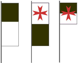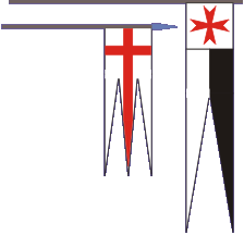 Podľa kronikárov, nosili bratia-rytieri na svojich kopijách ešte jeden druh koruhvy - malú podlhovastú zástavku s tromi chvostami, ktorá bola len biela s červeným krížom. Rôzne druhy zástav sú doložené aj dobovými kronikármi - Guillaume de Tyr, Jacques de Vitry, Joinville - ktorí jednoznačne píšu o "gonfanon baucent" veľmajstra a "beaucent" s červeným krížom v radoch bratov-rytierov. |