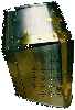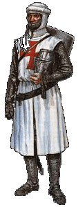 ![]() ![]() ![]() | Na tom bola prehodená tzv. tunika (bez rukávov, dole nastrihnutá kvôli sedlu) v príslušnej farbe (biela, hnedá, čierna) s krížom, stiahnutá v páse. Nakoniec navrch prišiel vonkajší plášť (v zime kožuch alebo kožušinou podšitý plášť) prichytený pod krkom. Na hlavu si cez kapucňu rytier nasadzoval prilbu. Z počiatku to bola tzv. kónická (normandská) prilba s masívnym nánosníkom, z ktorého sa neskôr vyvinul polkruhový pevný priezor až sa napokon začali používať rôzne druhy uzavretých prilieb. | ![]() |